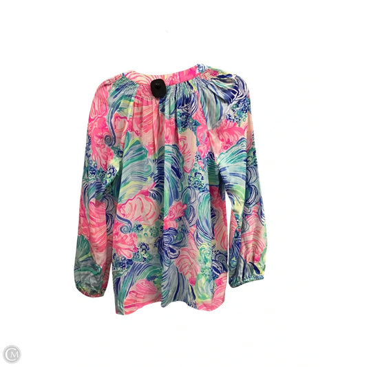 Top 3/4 Sleeve Designer By Lilly Pulitzer In Blue & Pink, Size: S