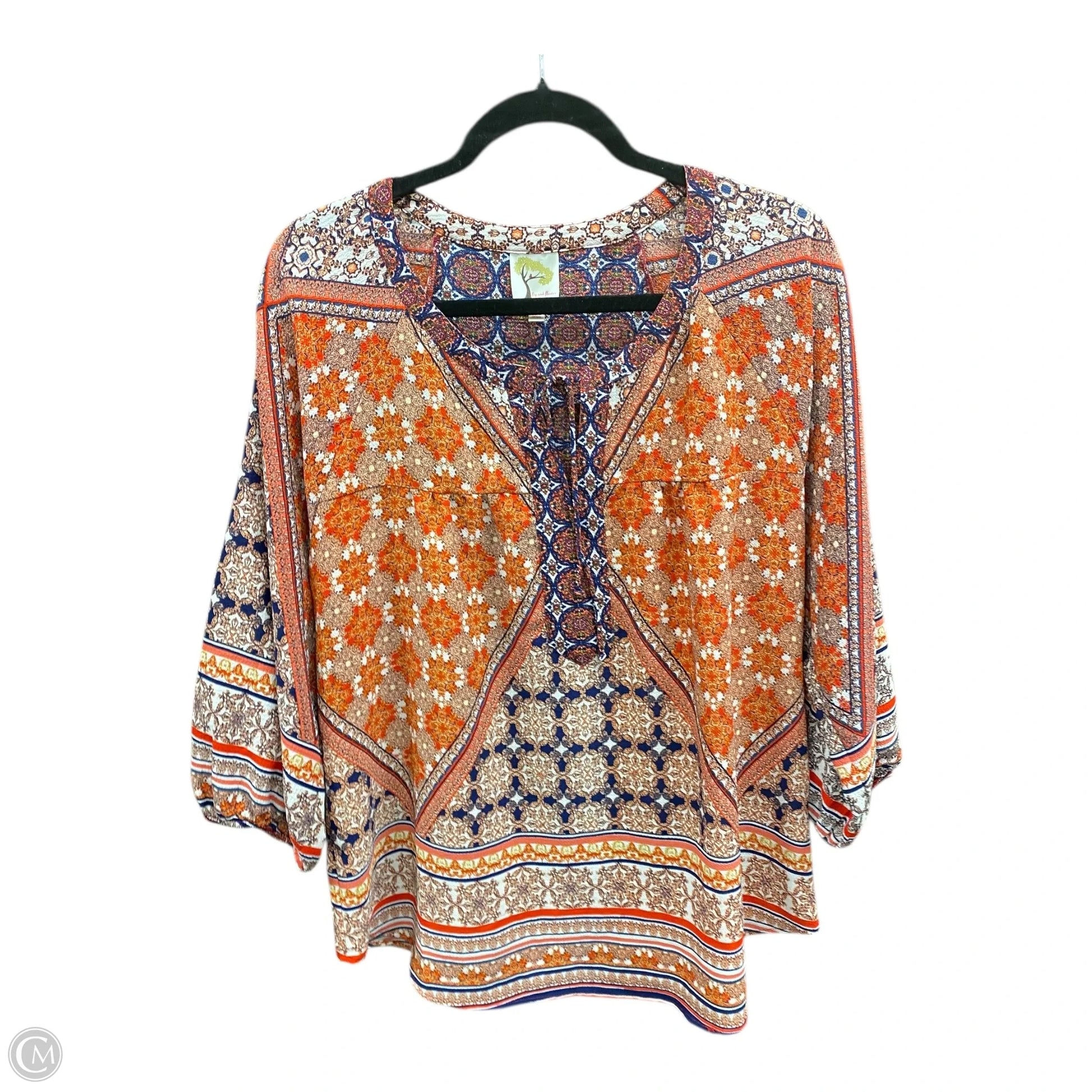 Blouse 3/4 Sleeve By Figuero & Flower In Geometric Pattern, Size: L